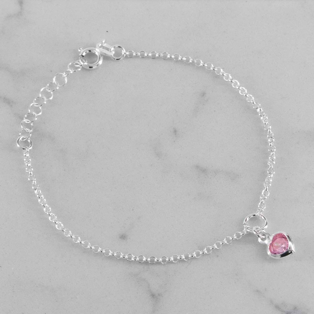 TOBILLERA DIJE CORAZON CRISTAL ROSADO 2MM